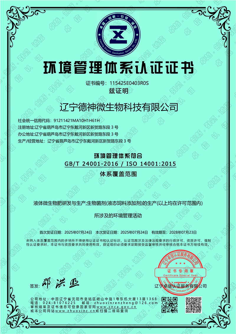 環(huán)境管理體系認(rèn)證證書
