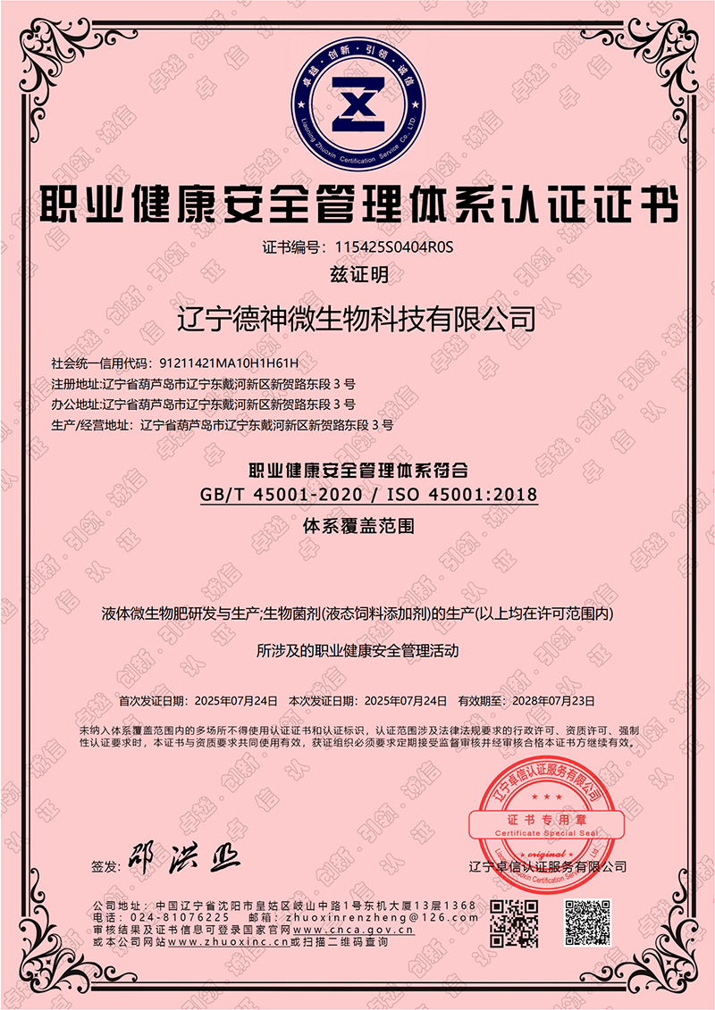 職業(yè)健康安全管理體系認(rèn)證證書(shū)